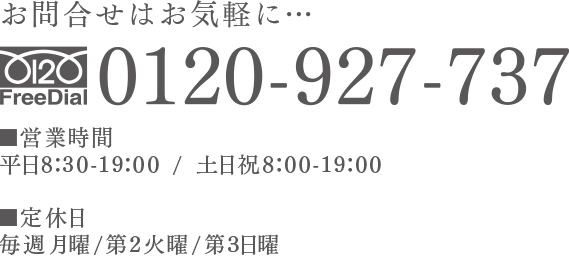 お問合せ 当店へのお問合せ お問合せ内容の秘密は厳守します。スタッフ一同親身になってご相談にお応えさせていただきます。お気軽にお問合せください。 ※時間外受付いたします。(要予約) ご予約優先です 当店は予約優先とさせていただいております。 ご予約のないお客様には多少の待ち時間が出る場合がございます。 予めご了承くださいませ。