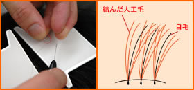 独自に開発した器具(特許)を使い、特許増毛ライン法を用いて結びます。